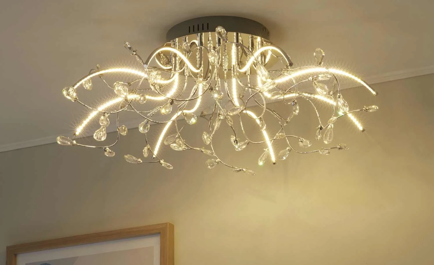 B-Leuchten LED-Deckenleuchte, chrom mit Glasblättern