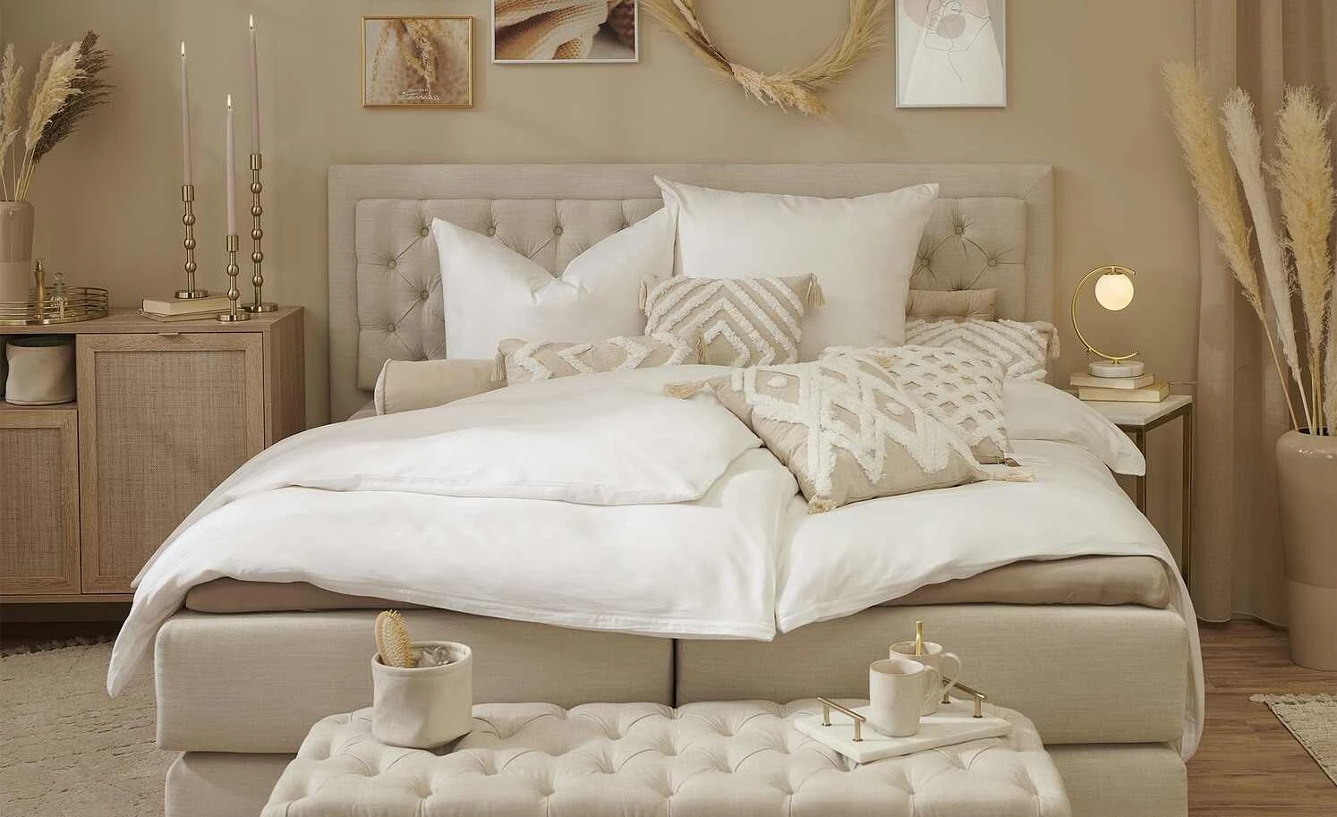 Entdecken Sie jetzt die zweite Influencerkollektion, die mit Cita Maass exklusiv für Höffner designt wurde. Die Kollektion greift Elemente des Boho-Stils auf und verströmt einen ganz besonderen Charme. Filigran, edel und perfekt für Nacht- oder Beistelltische: Diese schöne Tischleuchte erinnert mit ihrem Design und dem goldfarbenen Gestell an einen C-förmigen Sichelmond. Der runde Standfuß aus Marmor harmoniert mit dem goldfarbenen Metallgestell und verleiht der Lampe den letzten Schliff.