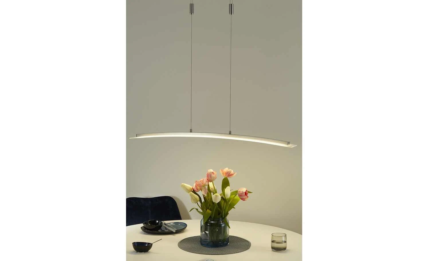 Fischer-Honsel LED-Pendelleuchte, Nickel-matt/ Glas gebogen