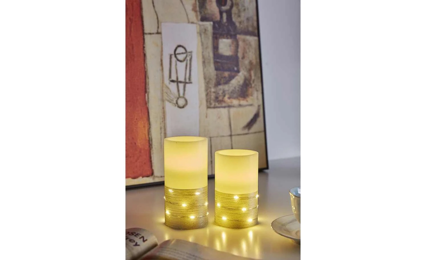 LED-Echtwachs-Kerzen 2er-Set, weiß/silberfarben