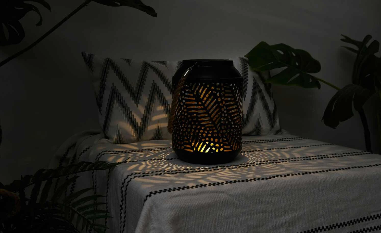 Solar-Tischleuchte, schwarz mit Seil Henkel