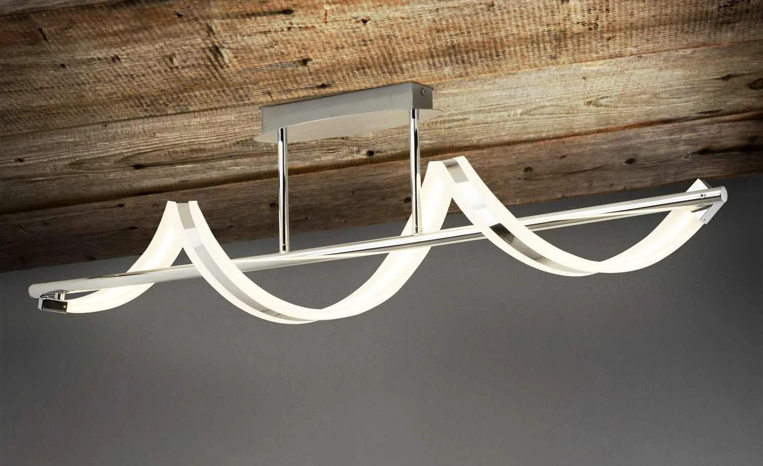 Trio LED-Deckenleuchte, chrom, Acryl geschwungen